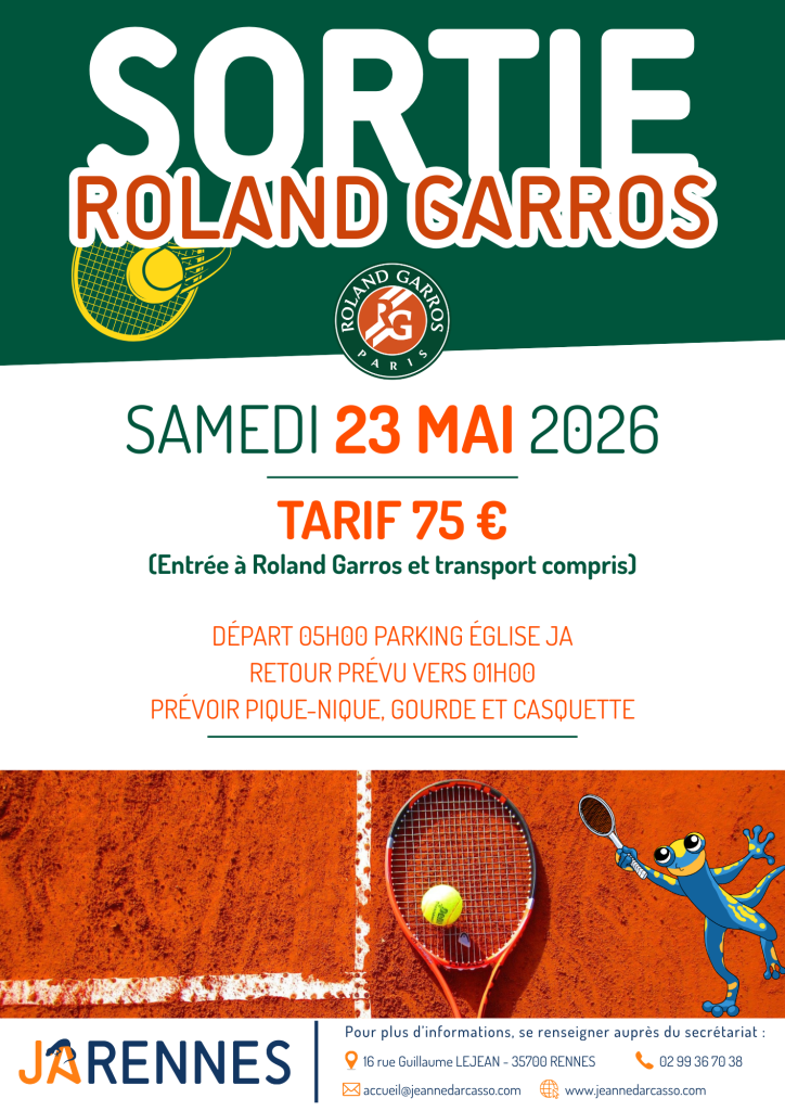 Dans le cadre de la vie du club et afin de partager un moment fort ensemble, la section tennis de la Jeanne d’Arc organise prochainement une sortie collective au tournoi de Roland-Garros. 🎯 L’objectif du projet Cette journée a pour but de :• vivre le tennis de haut niveau au plus près• créer un temps convivial