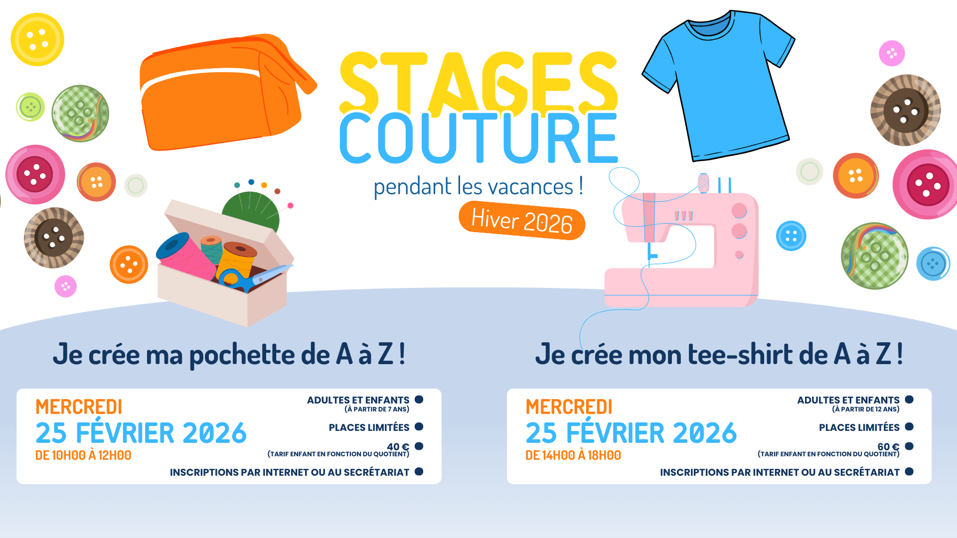 Atelier couture đ§”PubliĂ© le 16 fĂ©vrier 2026 Nouveau : 2 ateliers couture pendant les vacances d’hiver Ă la JA !