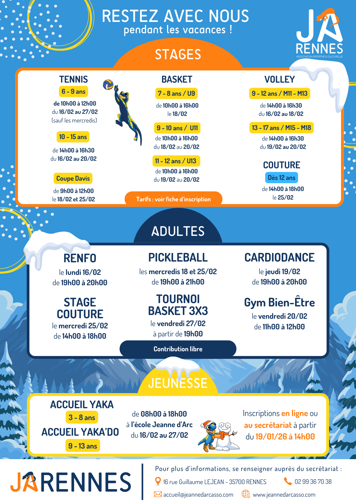 Vacances de février 2026 ⛄ Ouverture des inscriptions lundi 19 janvier 2026 à 14h00 ! Fiche d’inscription